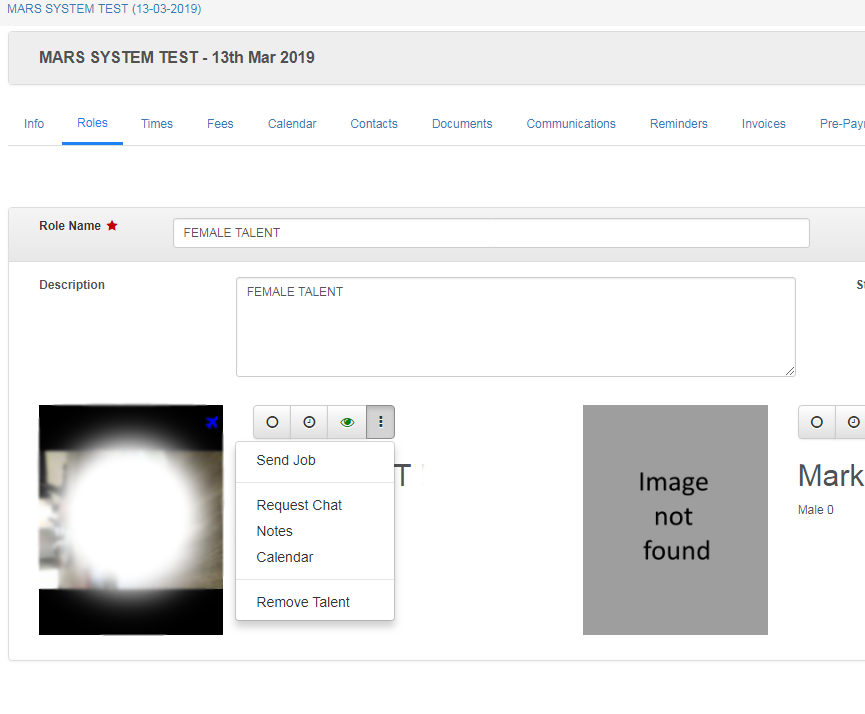 The talent is ready to receive all the job information. By clicking on the 3 DOTS you can SEND JOB to the talent. The talent will receive a notification on their lock screen on their phone (they must have the app).